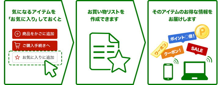 お気に入り登録すると割引通知やポイントアップ情報が届きます!