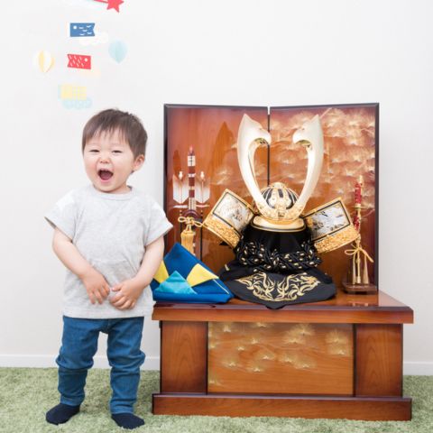 武将の身を守る兜や甲冑を摸した飾りには、「子どもを病気や災いから守ってくれますように」という願いが込められています。実際に子どもが被れるタイプもあり、写真撮影を楽しみたい方にもおすすめです。