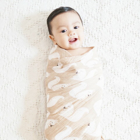 赤ちゃんを包んで安心させるアイテムで、外出時や室温調整にも便利です。ブランケット代わりとしても使えます。