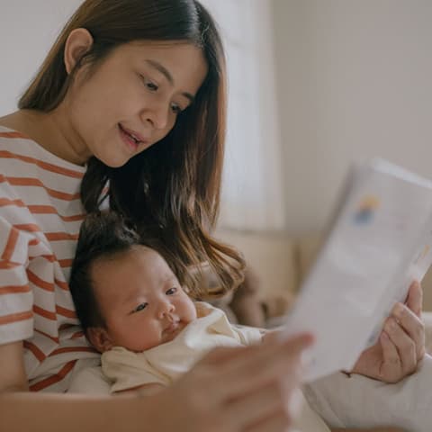 たくさん話しかける、絵本の読み聞かせをする