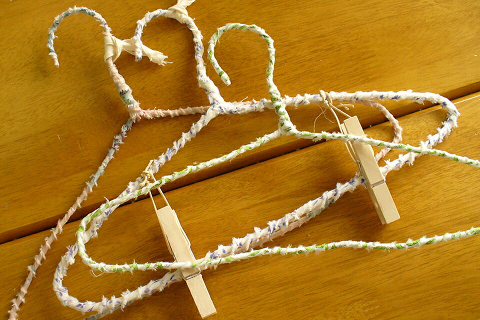 あとは、子供が描いた絵を貼ったり、ハンガーの土台部分にテープや毛糸を巻き付けたりして飾れば完成です。