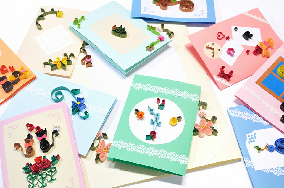 細長い紙をクルクル巻いて作ったパーツを組み合わせて立体的なデザインを作る、「ペーパークイリング」を貼ったメッセージカードもおしゃれです。お父さんのイメージに合わせたデザインに仕上げましょう。