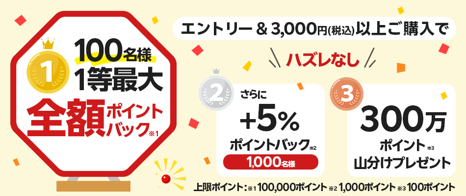 1等:抽選で100名様に購入金額の全額ポイントバック