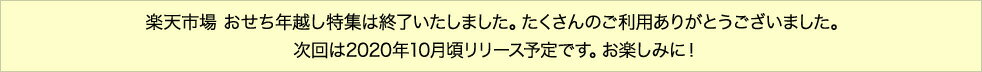 楽天市場ではおせちに特化したおせち特集を今年も開催。今なら人気のおせちが、年内お届け可能です!楽天市場なら海鮮、洋風、中華風など好みに合わせたおせちの他、価格別、早期割引、特典付き、送料無料などの条件で探せるおせちも取り揃えています。まだの方はお急ぎください!